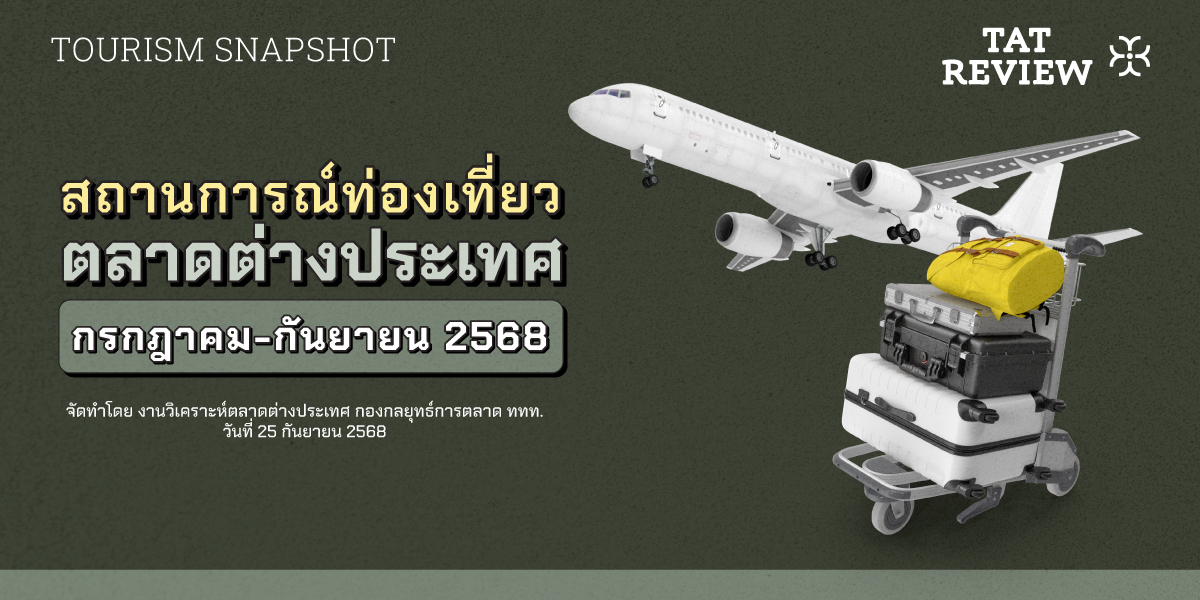 สถานการณ์การเดินทางท่องเที่ยวของนักท่องเที่ยวต่างชาติเข้าไทยระหว่างเดือนกรกฎาคม-กันยายน 2568 มีนักท่องเที่ยวต่างชาติจำนวน 7.48 ล้านคน ลดลงร้อยละ 13 และสร้างรายได้ทางการท่องเที่ยวประมาณ 3.32 แสนล้านบาท ลดลงร้อยละ 12 เมื่อเทียบกับช่วงเดียวกันในปี 2567