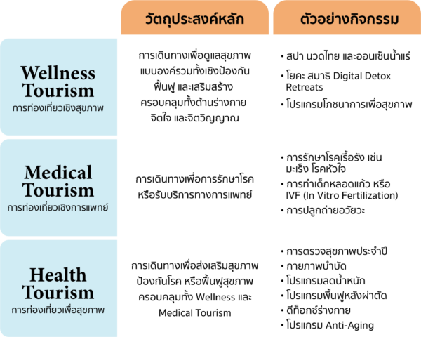 ความแตกต่างระหว่าง Wellness Tourism Medical Tourism และ Health Tourism