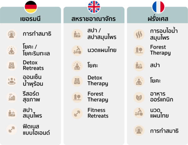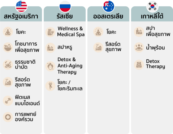 กิจกรรมเชิงสุขภาพที่นักท่องเที่ยวแต่ละประเทศสนใจ