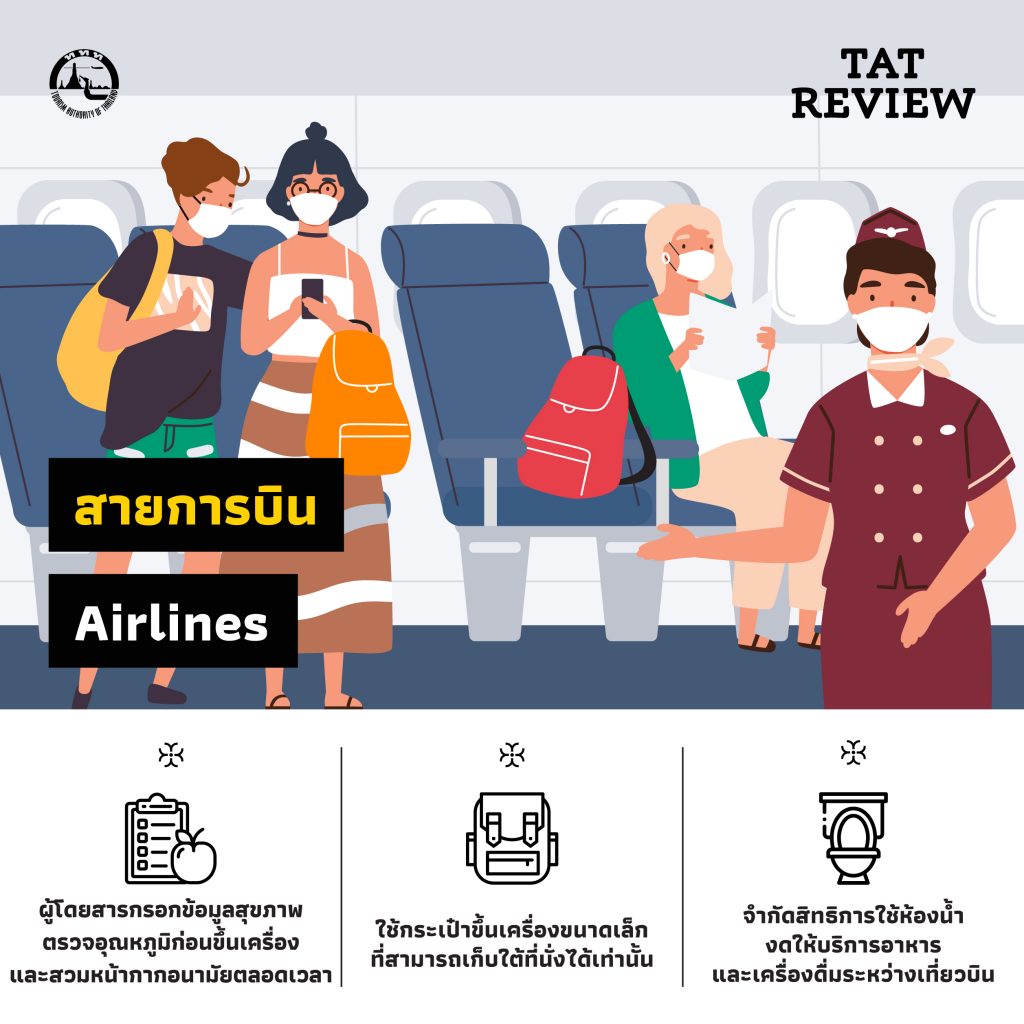 – ผู้โดยสารต้องกรอกข้อมูลสุขภาพ ตรวจอุณหภูมิก่อนขึ้นเครื่อง และสวมหน้ากากอนามัยตลอดเที่ยวบิน