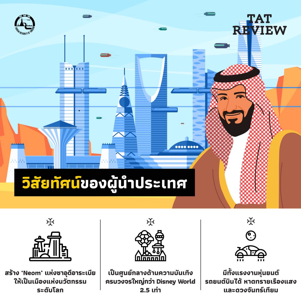 พื้นที่ในประเทศซาอุดีอาระเบีย คนทั่วไปคงมองเห็นแต่ผืนทรายแห้งแล้ง แต่มกุฎราชกุมารมูฮัมหมัด บิน ซัลมาน ทรงมองเห็นขุมทรัพย์และเมืองแห่งอนาคต