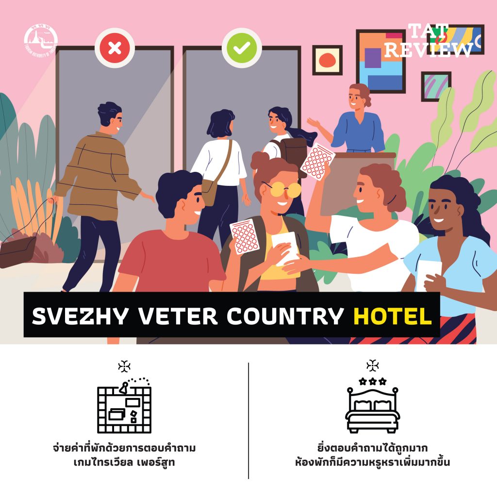 โรงแรม Svezhy Veter Country Hotel ตั้งอยู่ห่างจากเมืองมอสโก 45 กิโลเมตร ได้เปิดให้บริการห้องพักฟรีภายในอาคาร 2 ชั้น สำหรับผู้ที่ลงทะเบียนรับสิทธิ์ในการเข้าร่วมตอบคำถามเกม Trivial Pursuit